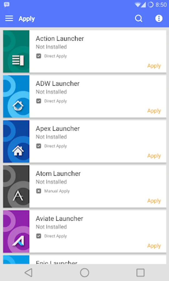 • Apply, 19 Launcher Cards, 13 Direct Apply, 6 Manual