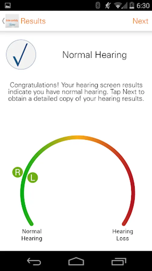 • Screening results are can be saved to track changes over time or for you to discuss further with a qualified hearing professional.