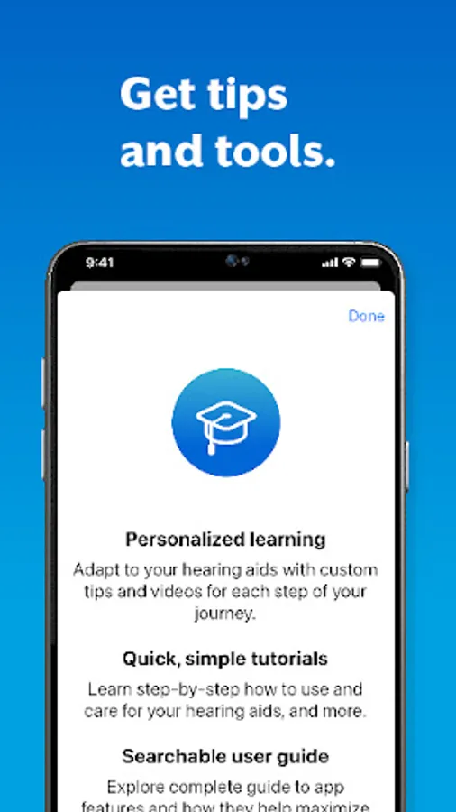 Created with the help of hearing aid wearers, this easy-to-use app allows you to: