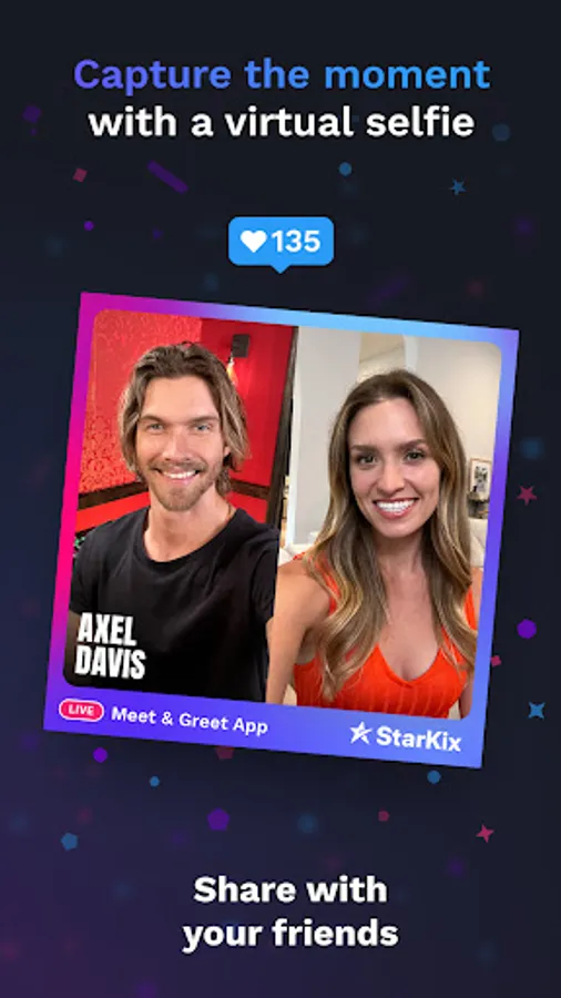 Having fun in a Live conversation is just the beginning. Now the unforgettable experience of talking with your favorite stars continues through a shareable selfie that you get from the star. You can even tell them how you felt in a video message – letting the star know how much they mean to you.