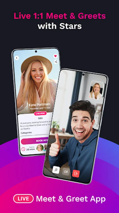 It is no longer necessary to be at a live event to meet with stars. Stars can now come to you Live no matter where you are, allowing you to talk with real stars one-on-one for 5 minutes from anywhere. The fun is better than ever.