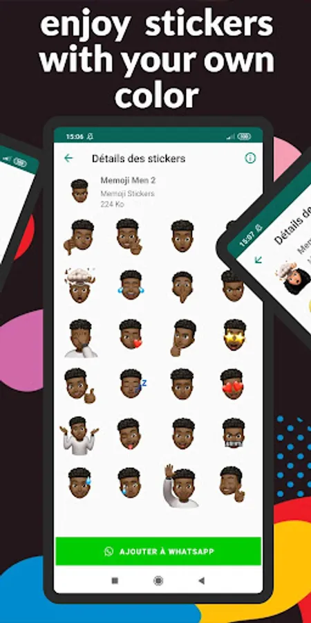 Use this WAStickerApps Memoji Black People Stickers app and Add New Stickers pack of: