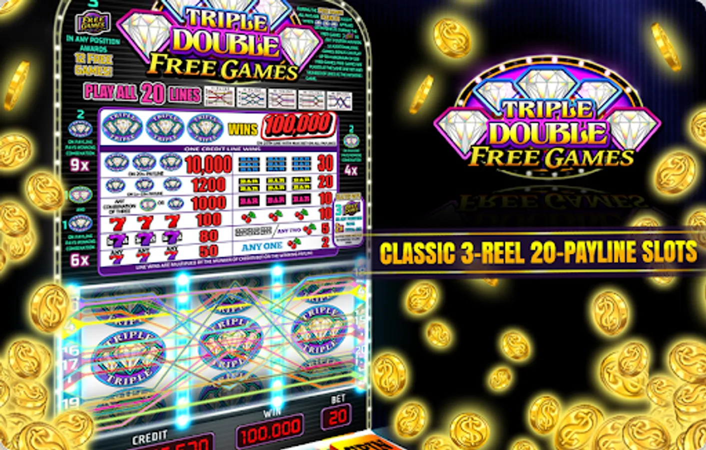 Triple Double Diamond Slot Machines is a classic 3-reel diamond slots and 100% totally free!!