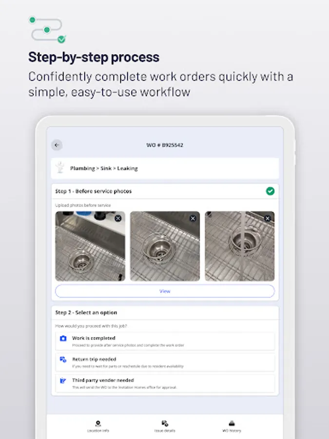 · Guided – With its seamless flow, simple language and focus on one task at a time, One Onsite is simple for the technicians to understand, and they require minimal training to use the app