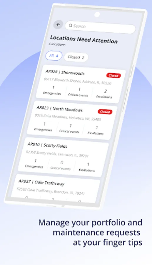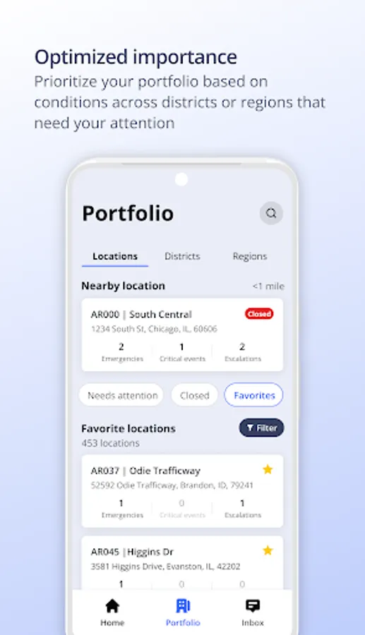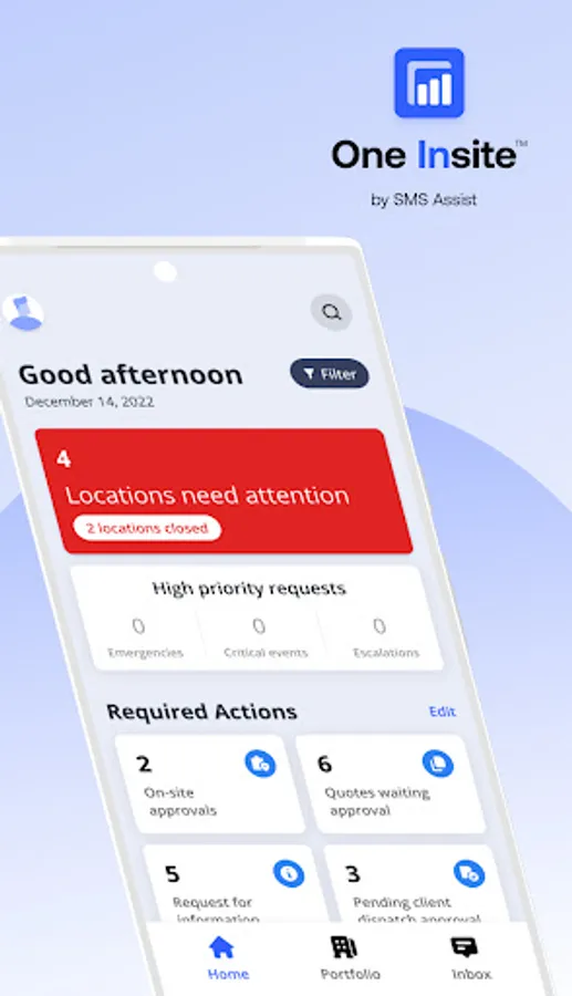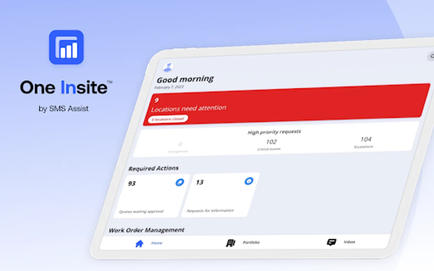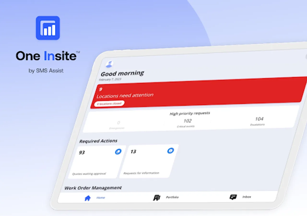 • Portfolio Management – One Insite by SMS Assist assists you in managing your portfolio, notifies you of locations requiring your attention, and prioritizes actionable tasks to ensure that your locations are operational.
