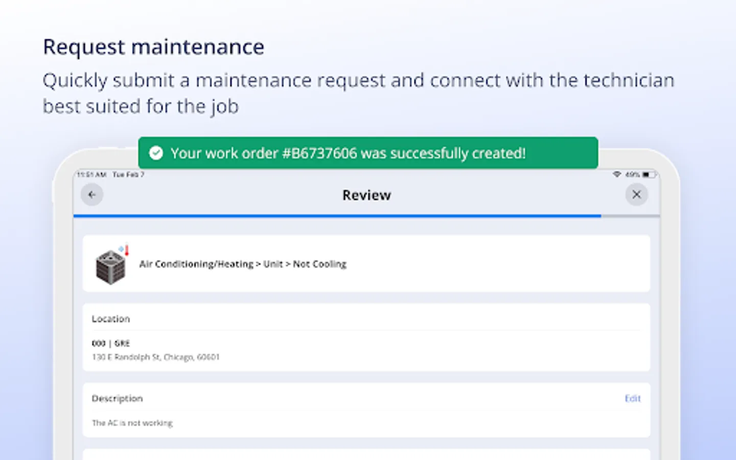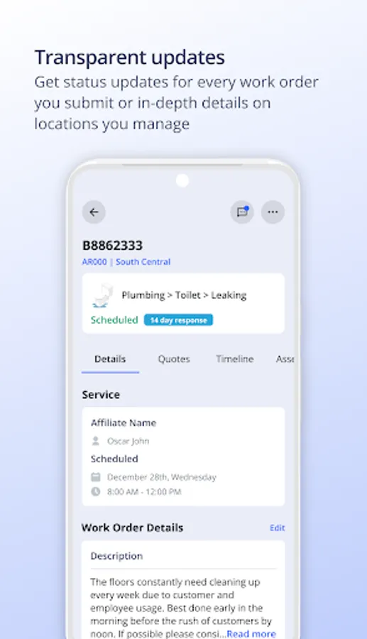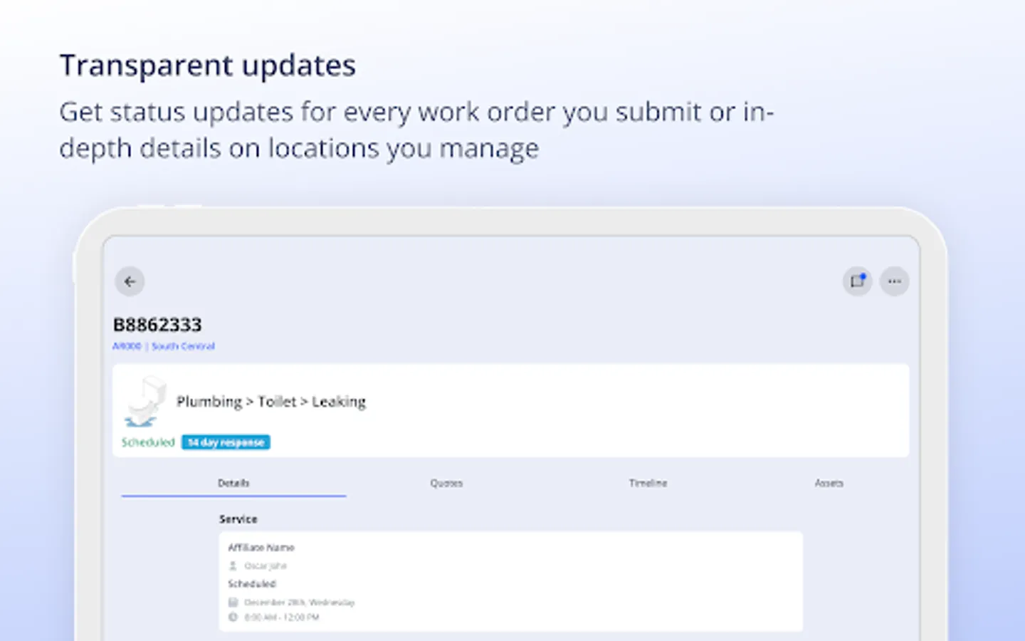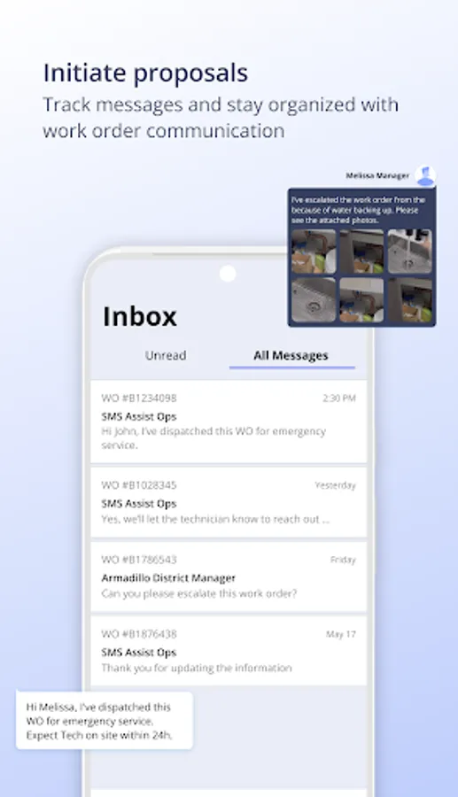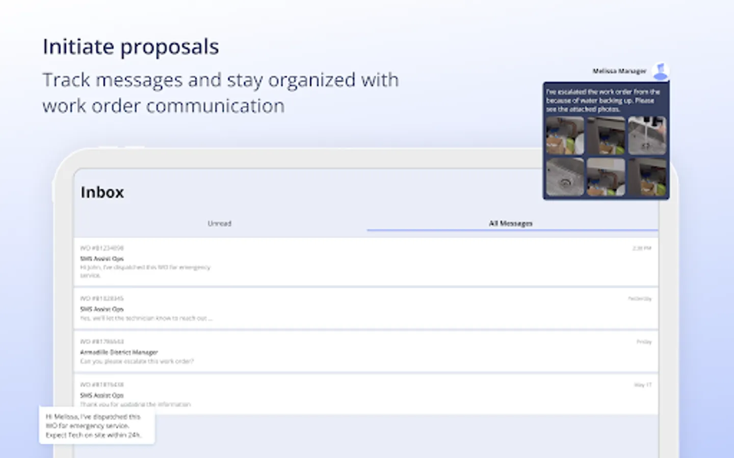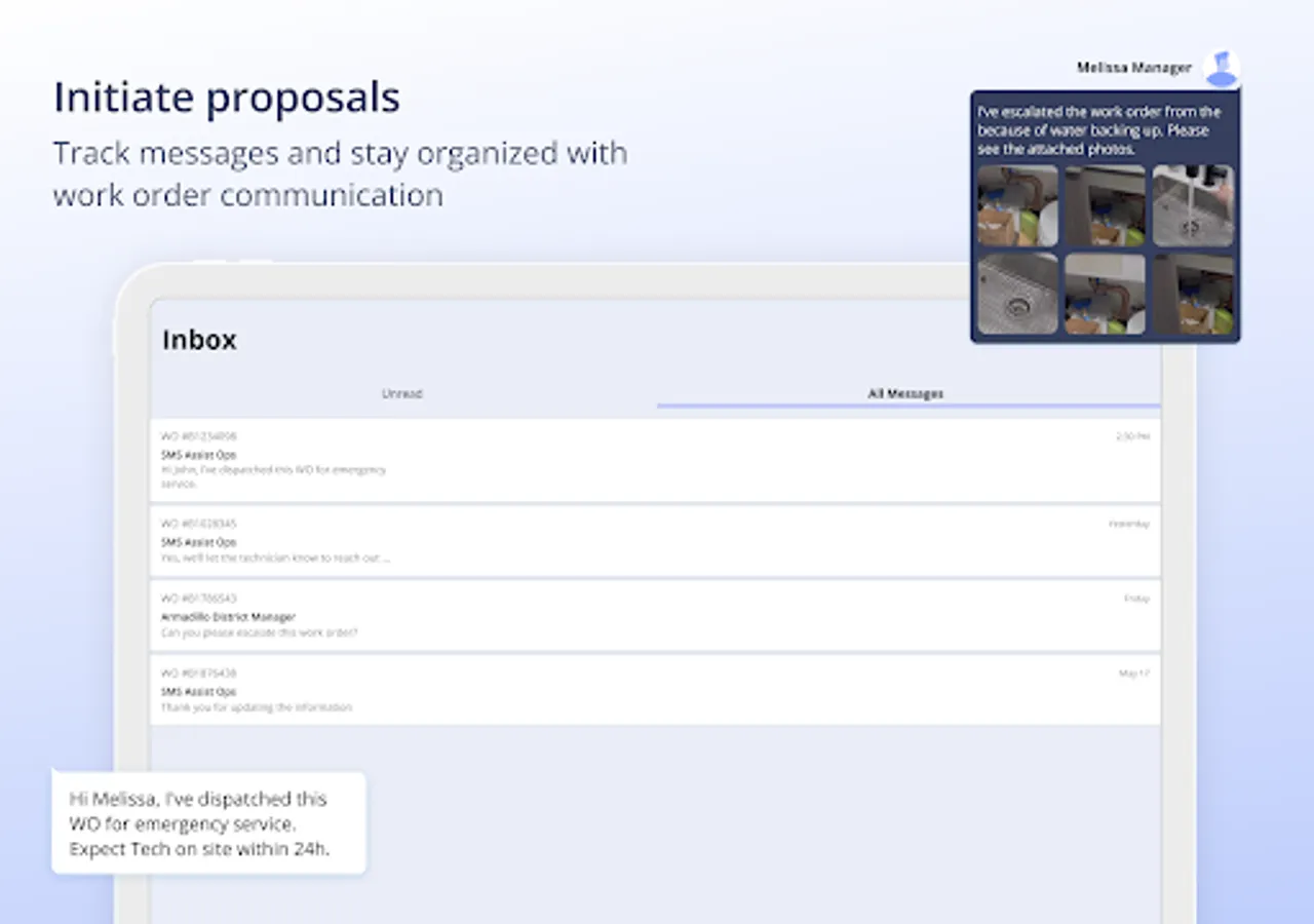 • Push Notifications – One Insite by SMS Assist keeps you informed of each work order's status. You can easily enable push notifications for important updates, such as when new messages arrive, actions are pending, your technician is assigned, and your service appointment is scheduled.