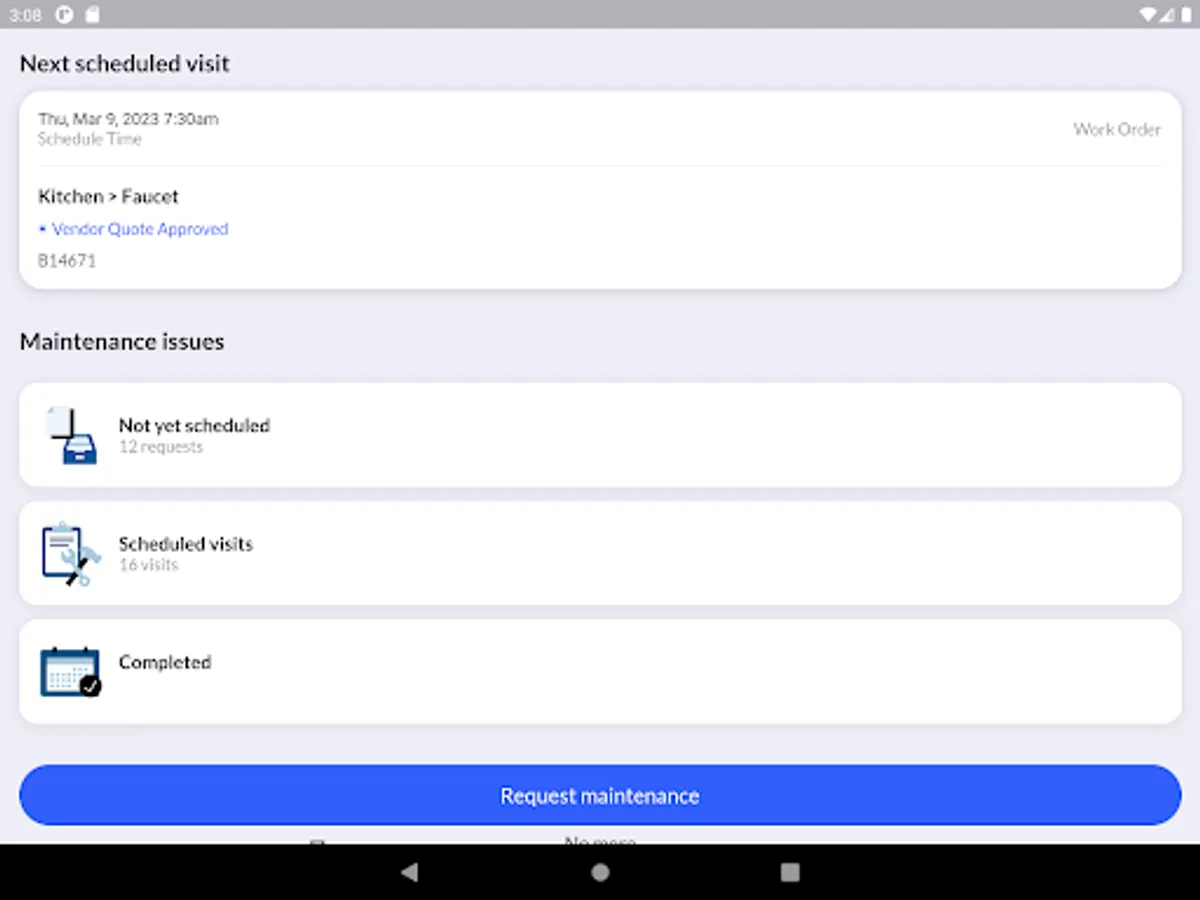 Make a request: Creating maintenance requests is quick and seamless. Fixt’s intuitive interface makes it easy to narrow down your problem, take a few helpful photos or videos, and add any notes you’d like to share.