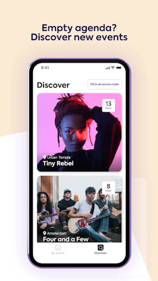 For events that work with Close, you can provide your phone number when purchasing. This gives you access to the event and your digital tickets in the app. Even if you are without internet, you have your ticket(s) at hand.