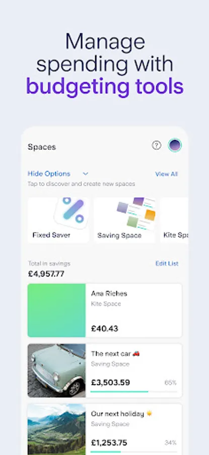 • Personalise Spaces with pictures, set a target, and track your progress.