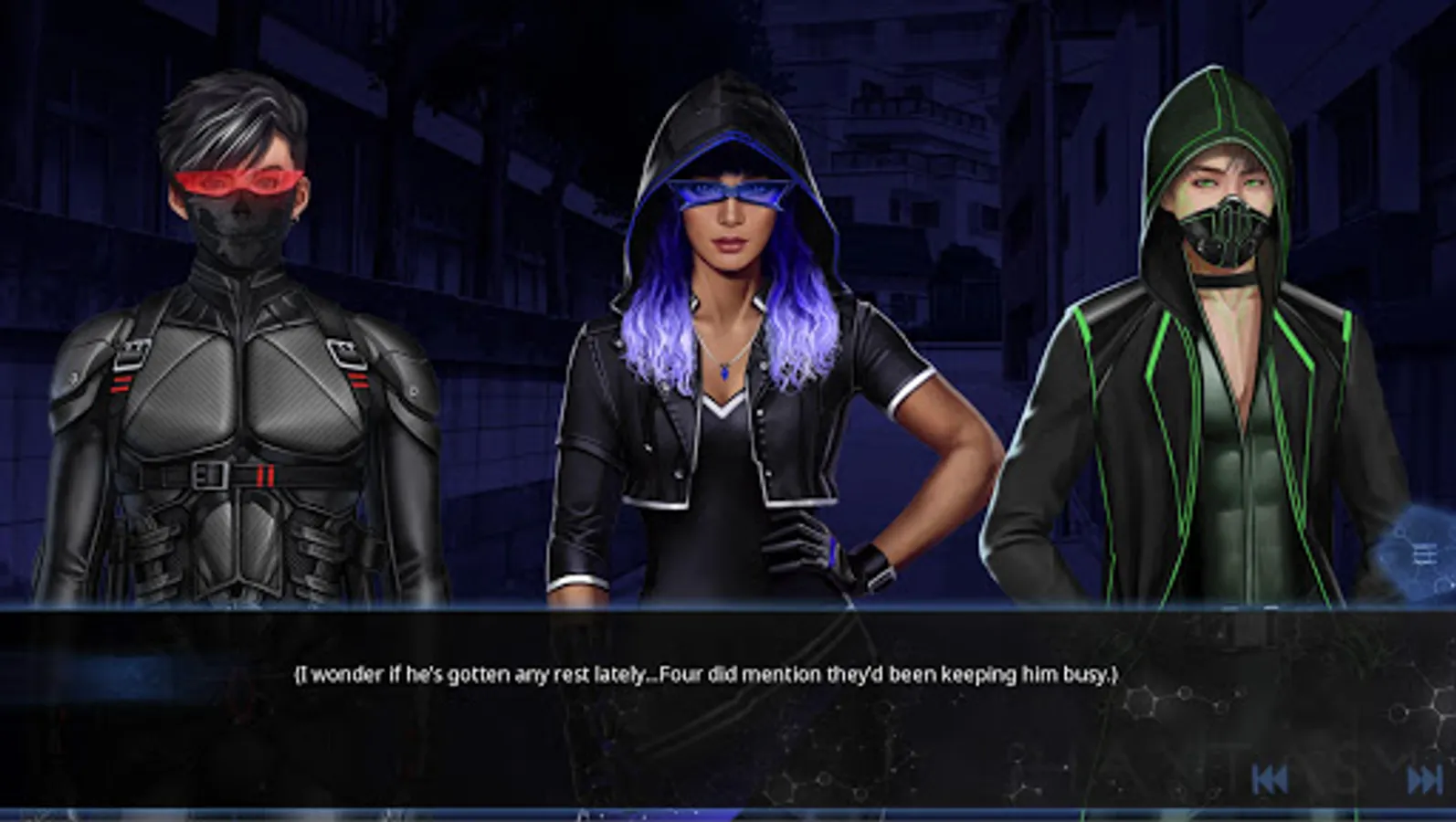 Enter the year 2077 and become Seven, the newest addition to Phantom Alpha, a secret team who operates under the enigmatic government organization known as P.H.A.N.T.A.S.M. After joining, you find yourself befriending the other rookie on the team, an incredibly skilled youth known as Zero. As you meet the other members, you quickly learn that while vastly talented, each of them is clearly much more than meets the eye.