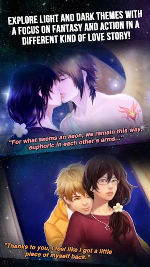 -Experience a different kind of love story with a balance between dark and light themes, and a strong emphasis on fantasy and action.
