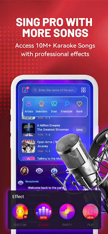 Welcome to our massive social community and great singing app! Sing karaoke songs with users from all around the world, and you will love hearing the voice of all future stars. Sing or participate in regular karaoke competitions for chances to win amazing prizes or just have fun with a karaoke-singing app in your pocket!