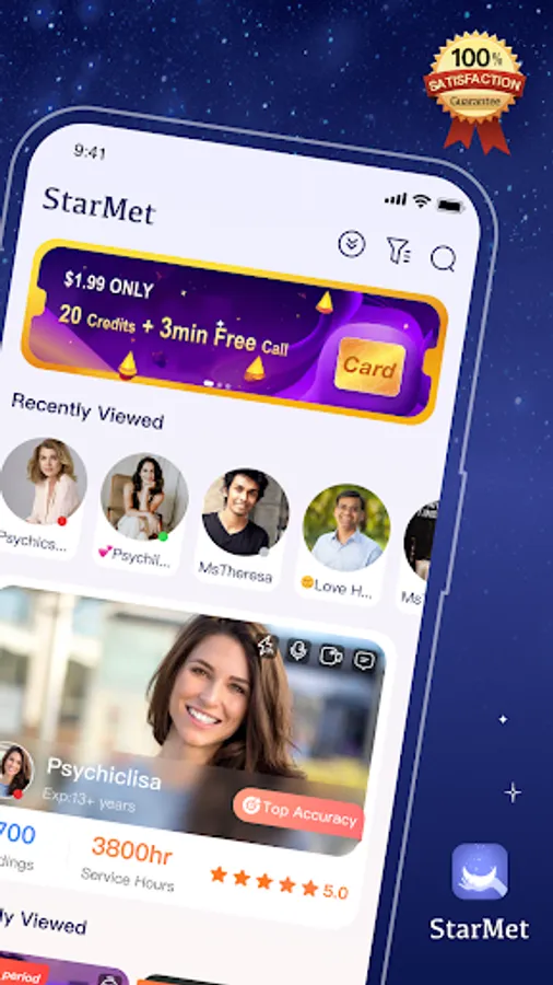 Welcome to StarMet, the best app to remove negative energy and get insights from real psychics.