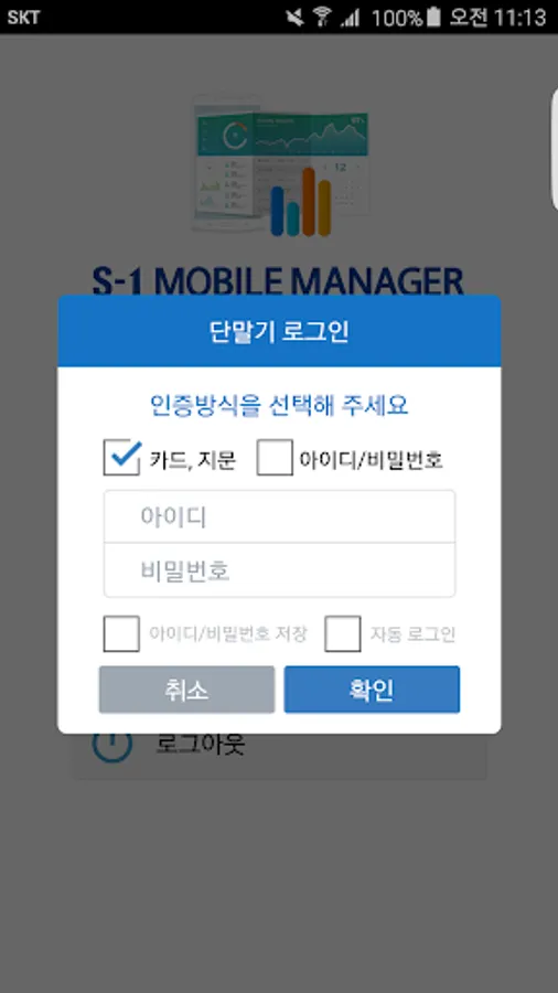 ㅁ S1 Mobile Manager provides mobile attendance/access management service through connection with S1 fingerprint reader.