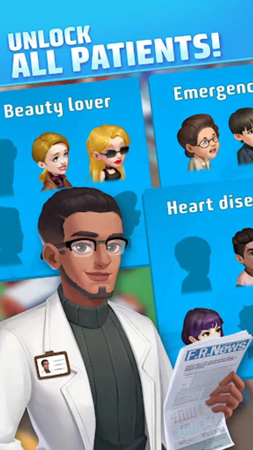 As the administrator of a bustling medical center, you'll collaborate with elite doctors and the energetic nurse Mia to cure patients and design a hospital that brings smiles to everyone's faces. From patient care to researching new medicine and state-of-the-art equipment, you have the power to make a difference!