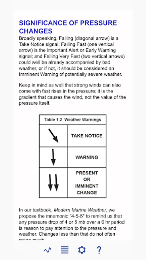 A full Help file with details of operation and tips on the use of atmospheric pressure in navigation is included in the app. This file can be viewed online at https://www.starpath.com/marinebarograph along with videos showing how to use the app.