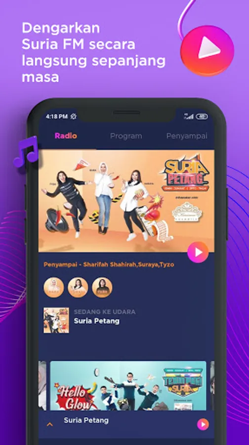 Suria Malaysia is the country’s leading Radio Station for listeners aged 25 and above who loves 90’s to today’s latest hit music.