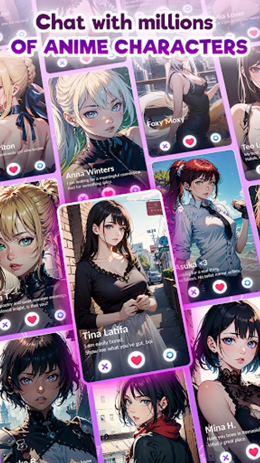 Indulge in a unique dating experience as you get to know a diverse cast of AI anime girls. Each character boasts a distinct personality, quirks, and backstory, making every encounter a fresh and exciting adventure. Whether you're into the charming girl-next-door or the enigmatic bookworm, there's a digital partner waiting to steal your heart.