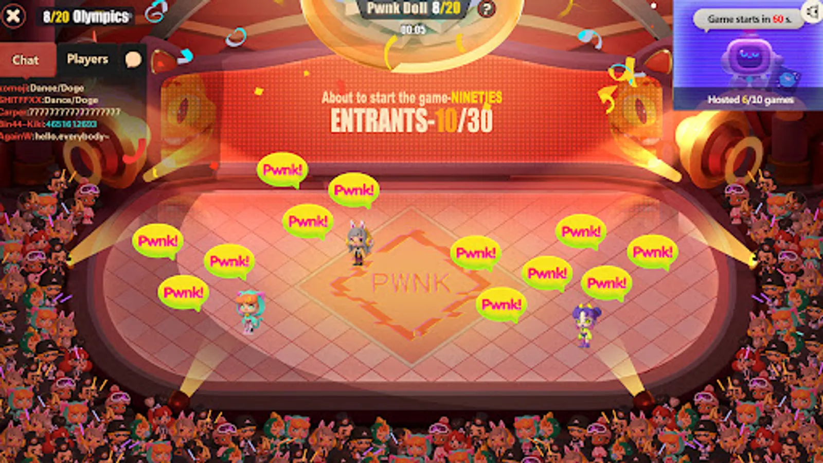 Pwnk Royale mode: A mini-game battle royale that can host up to 456 players. Players compete against each other till the last one survives.