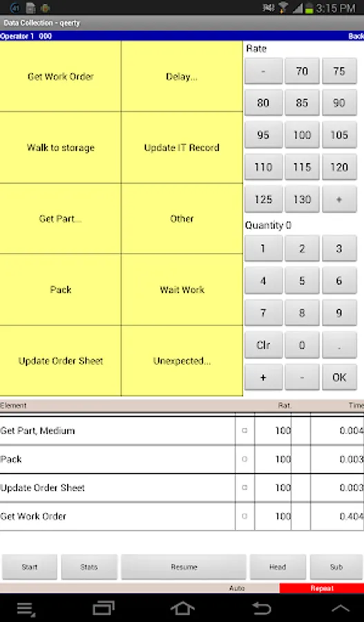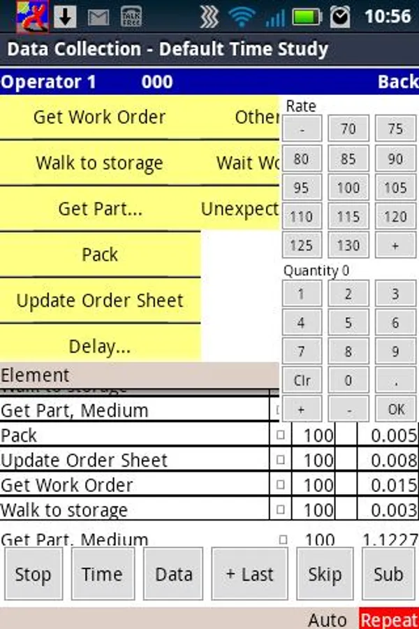 Any number of time study templates can be used in the application to cover all your operations. Add header data to identify the study, additional data and notes by observation to capture full details of the study. You can performance rate every observation and easily handle interruptions and fumbles. Missing some elements – then add and edit elements in real time on the device.