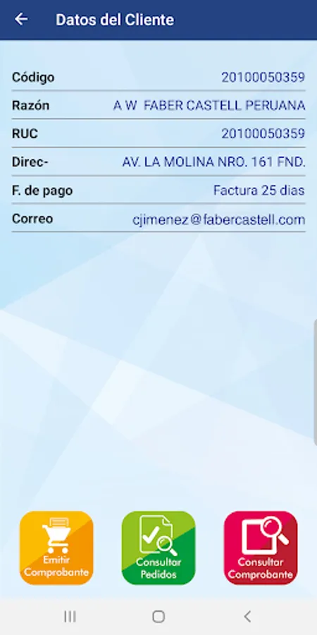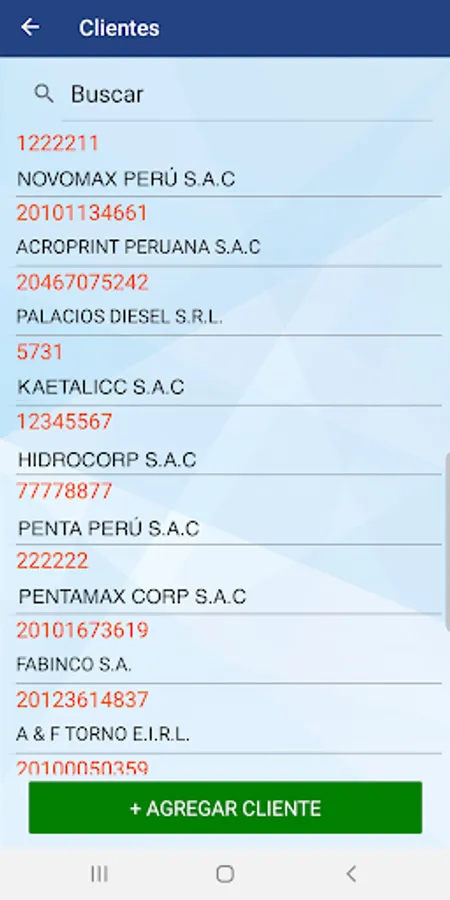 - List of clients. New customer registration (get data from SUNAT if the RUC starts with 20)