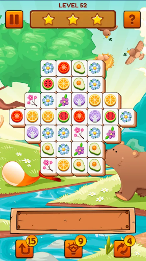 1️⃣ Tap on three identical tiles to connect them and form triples.