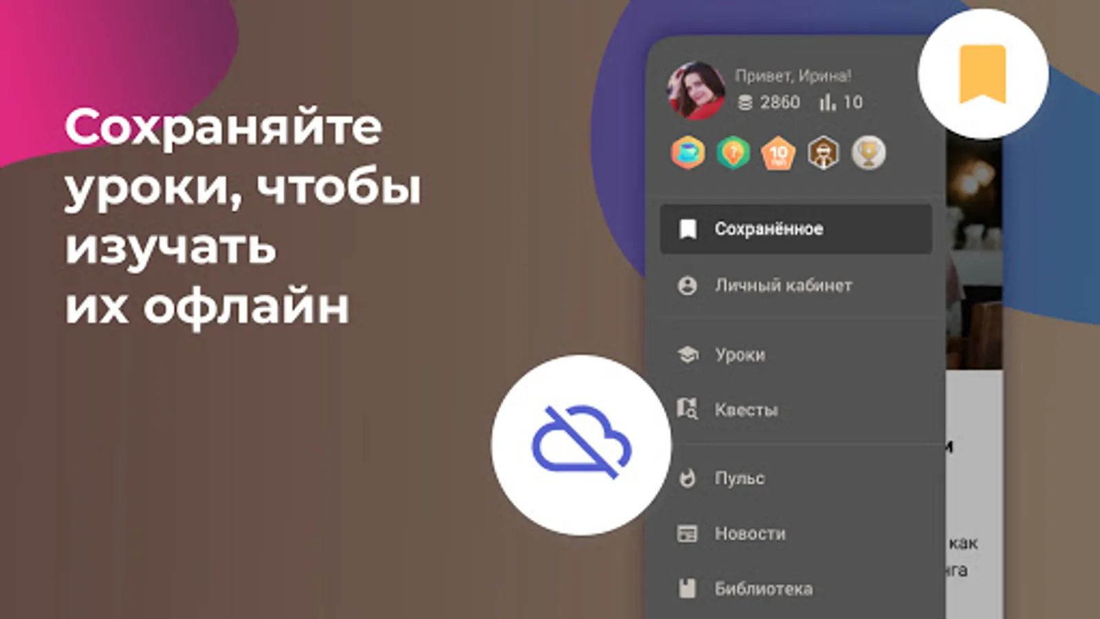 To study lessons without an Internet connection, download lessons to your smartphone using the "Save" button.