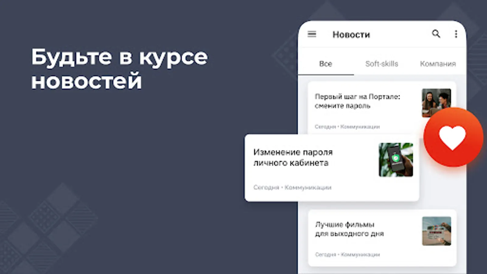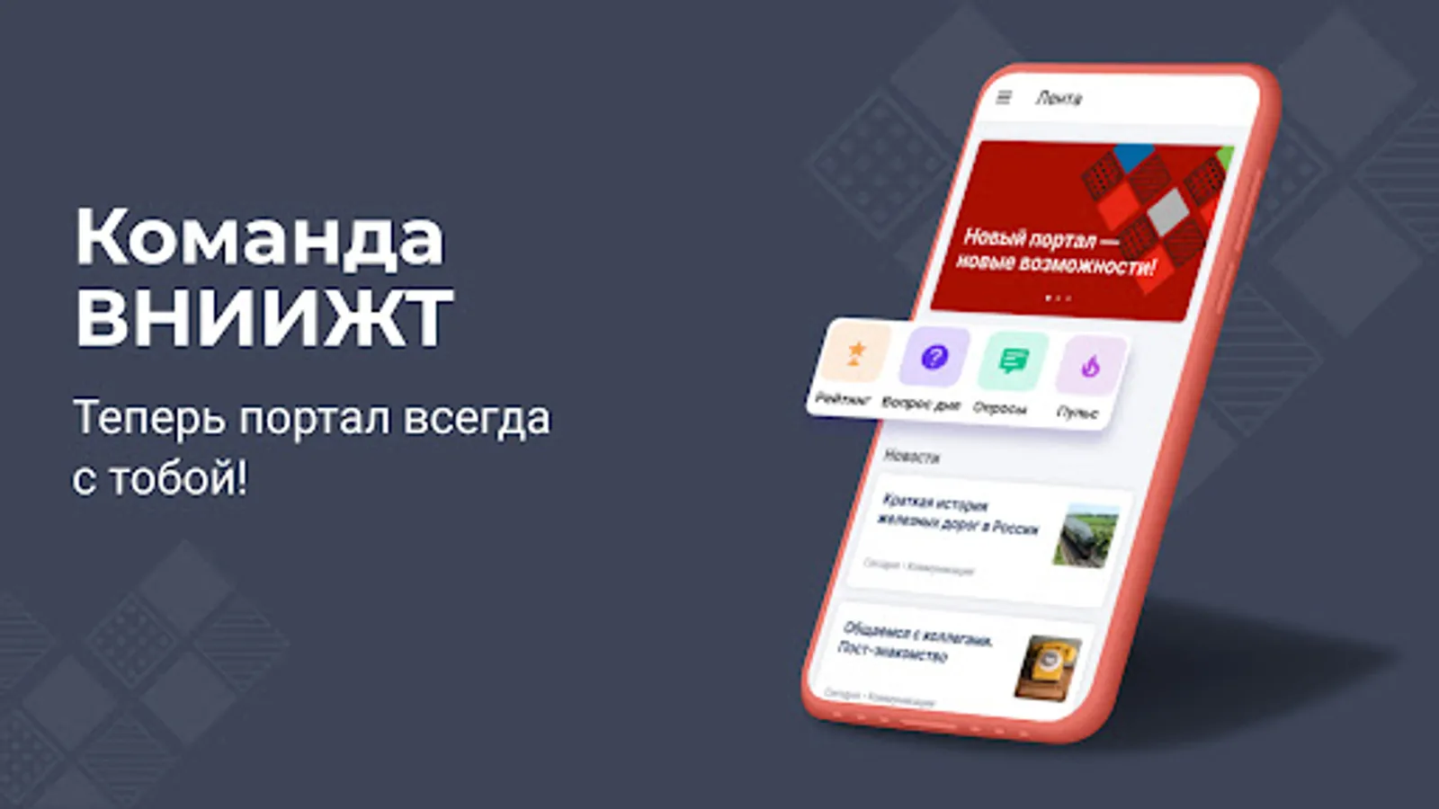 The main features of the internal portal of the Institute in your smartphone. Intra-corporate communications, communication, news, gamification and much more in one application.