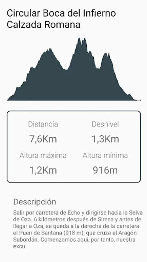 Map: Information about the selected route identifying it in the map and its POI and potential dangers.