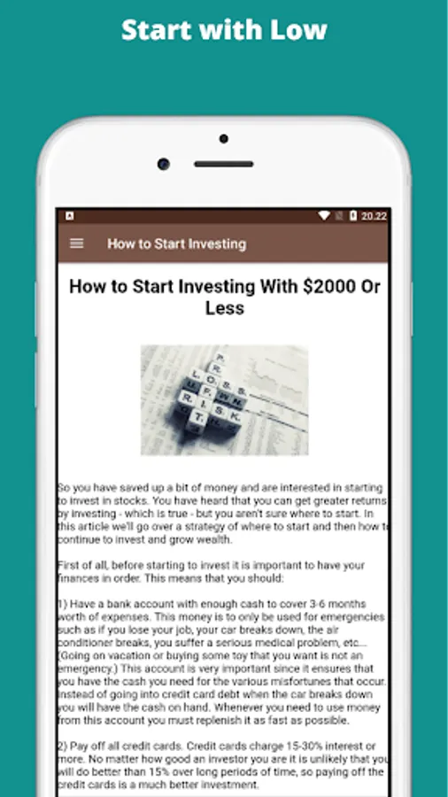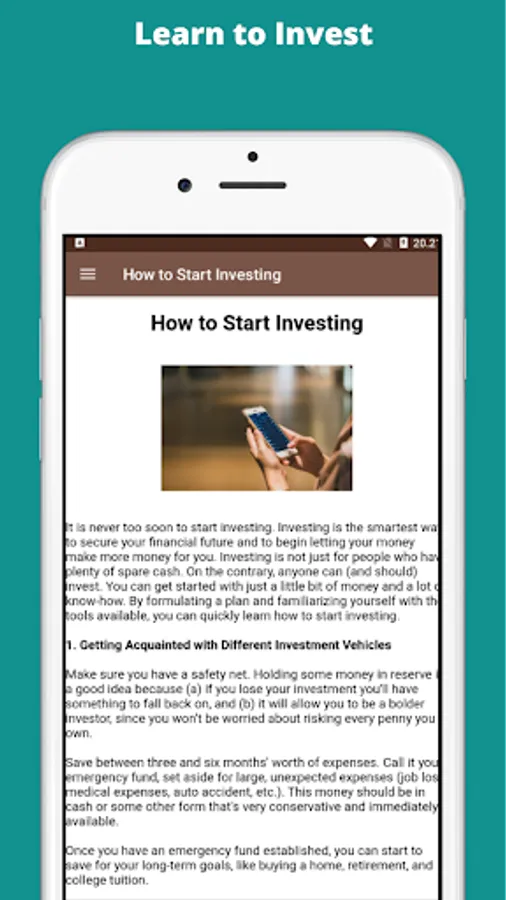 Learn How to Get Started Investing Investing carries a risk, even when prudent. It's not always a big risk, but any risk should be taken into account. Consequently, you ought to have an emergency fund.