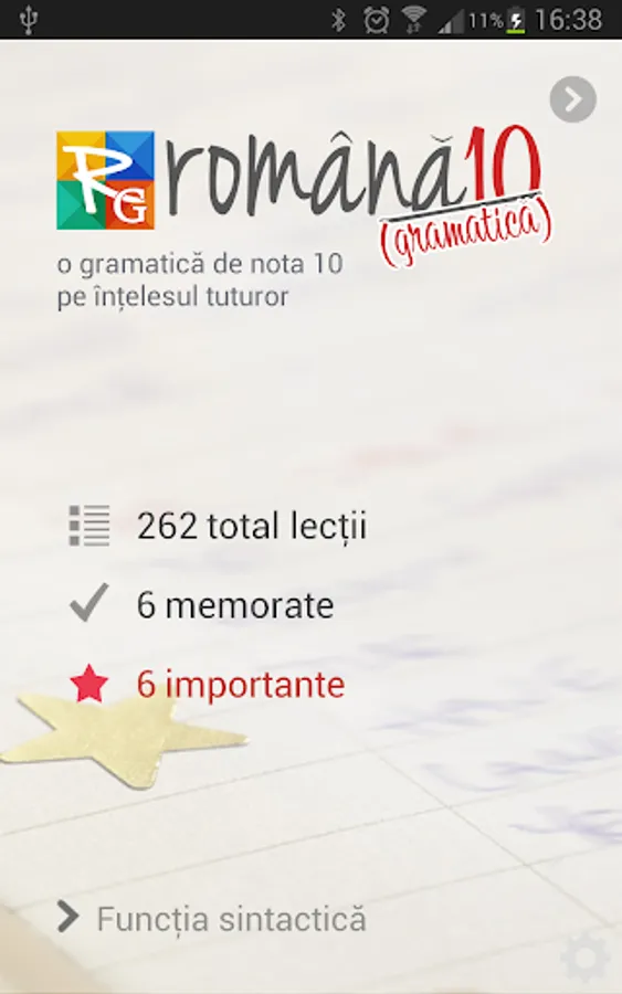 "Simple and to the point. Exactly what you need to prepare for tests and written work and evaluation at the end of grade VIII of the Romanian language. The application will help to grammar. "