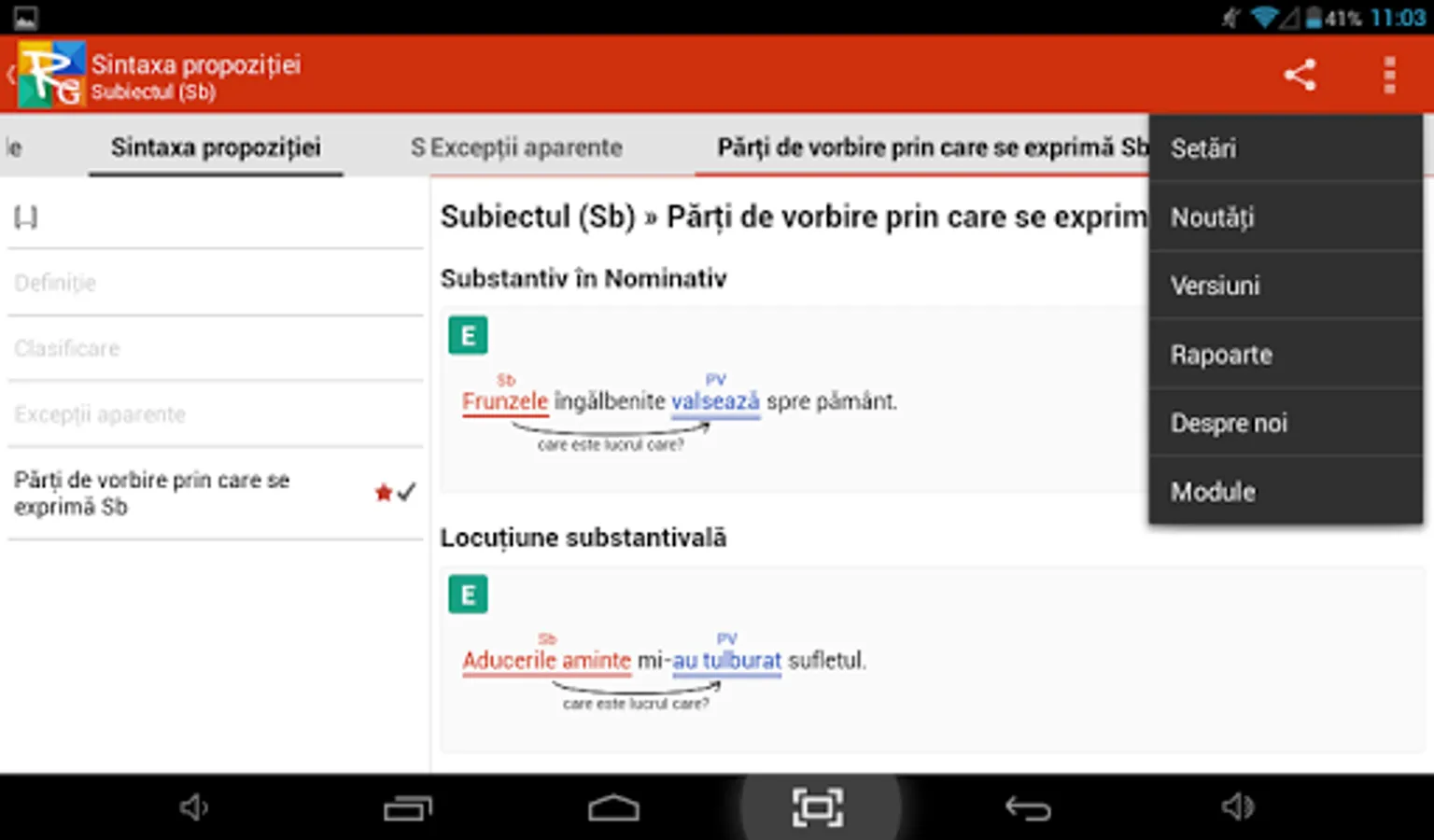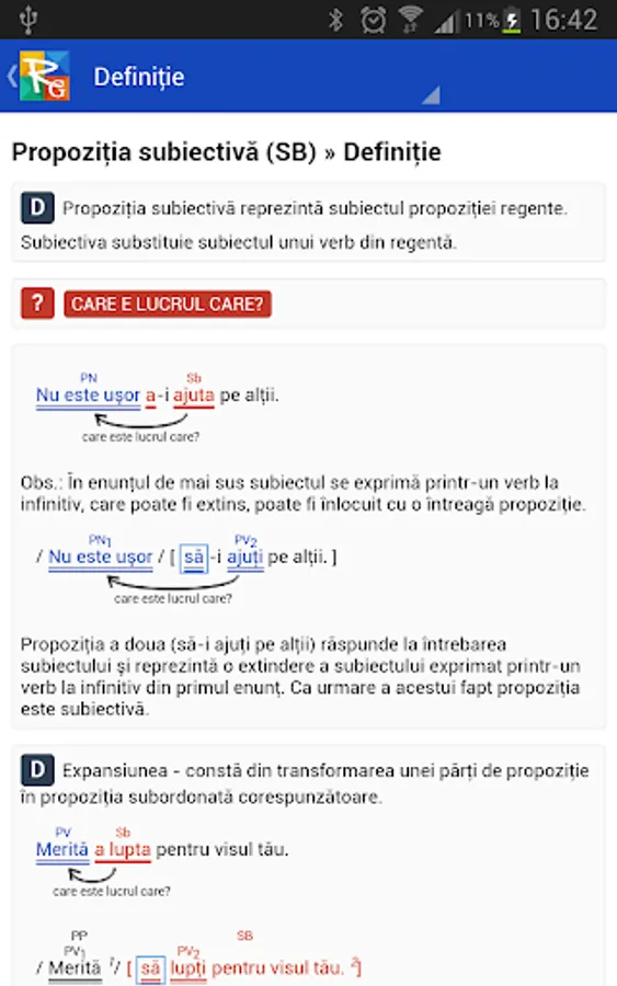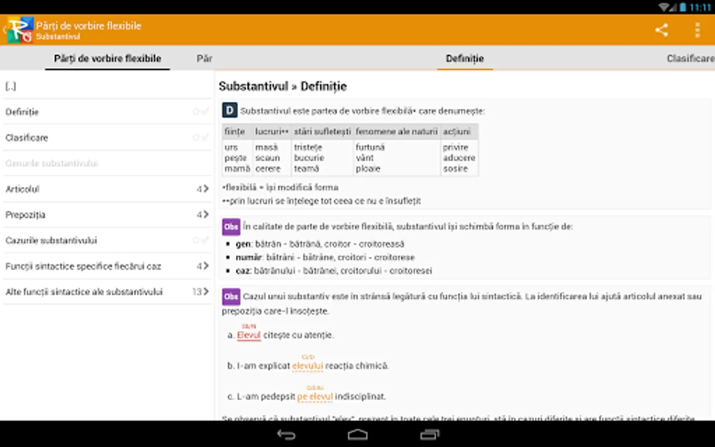 The application is a tool that can easily find any information about morphology and syntax in Romanian grammar.