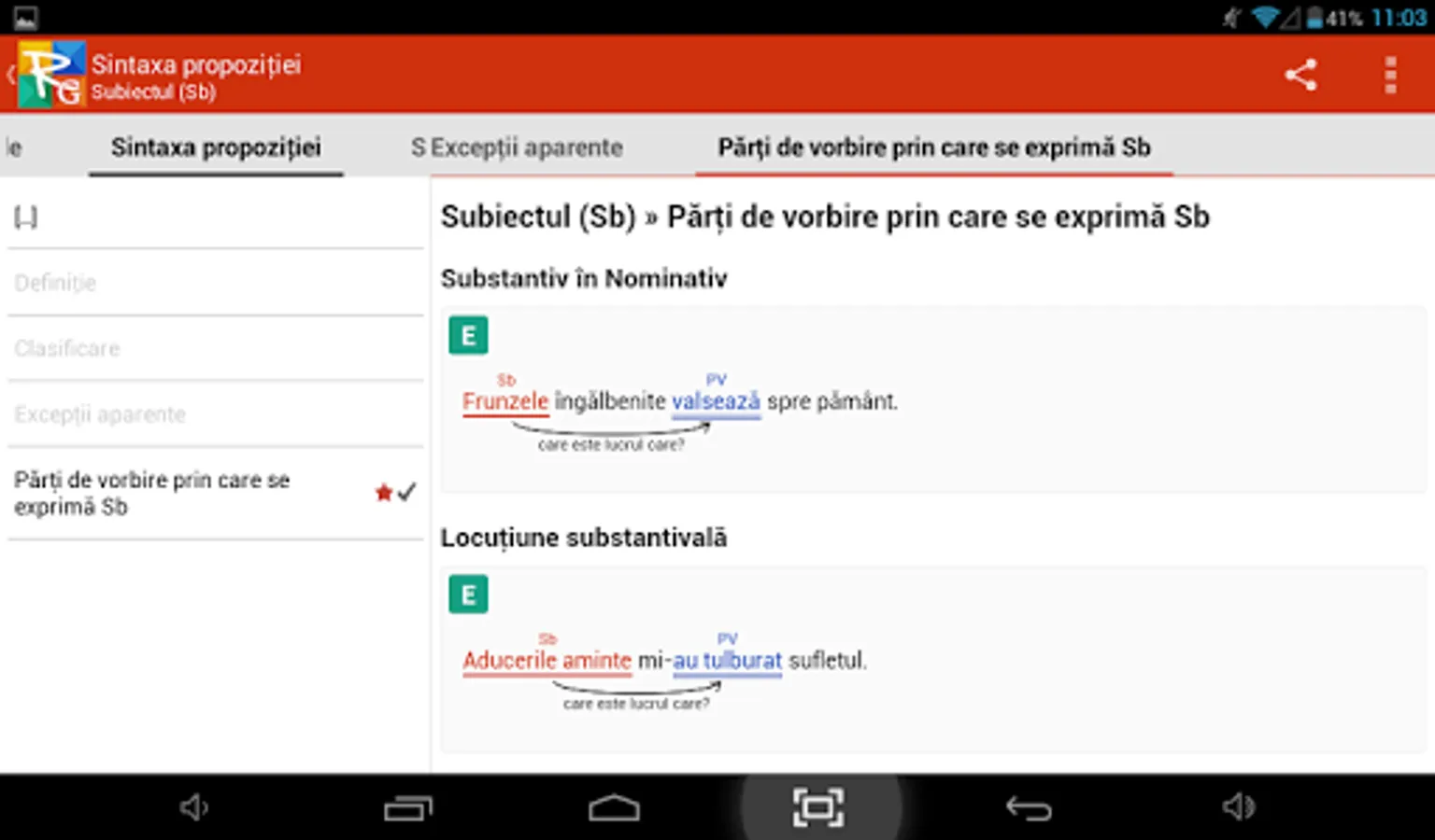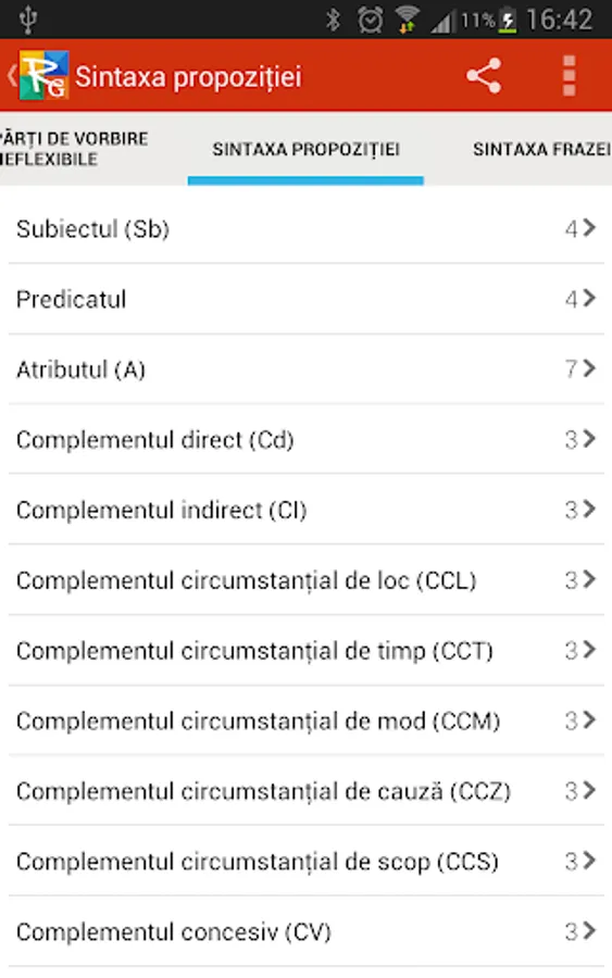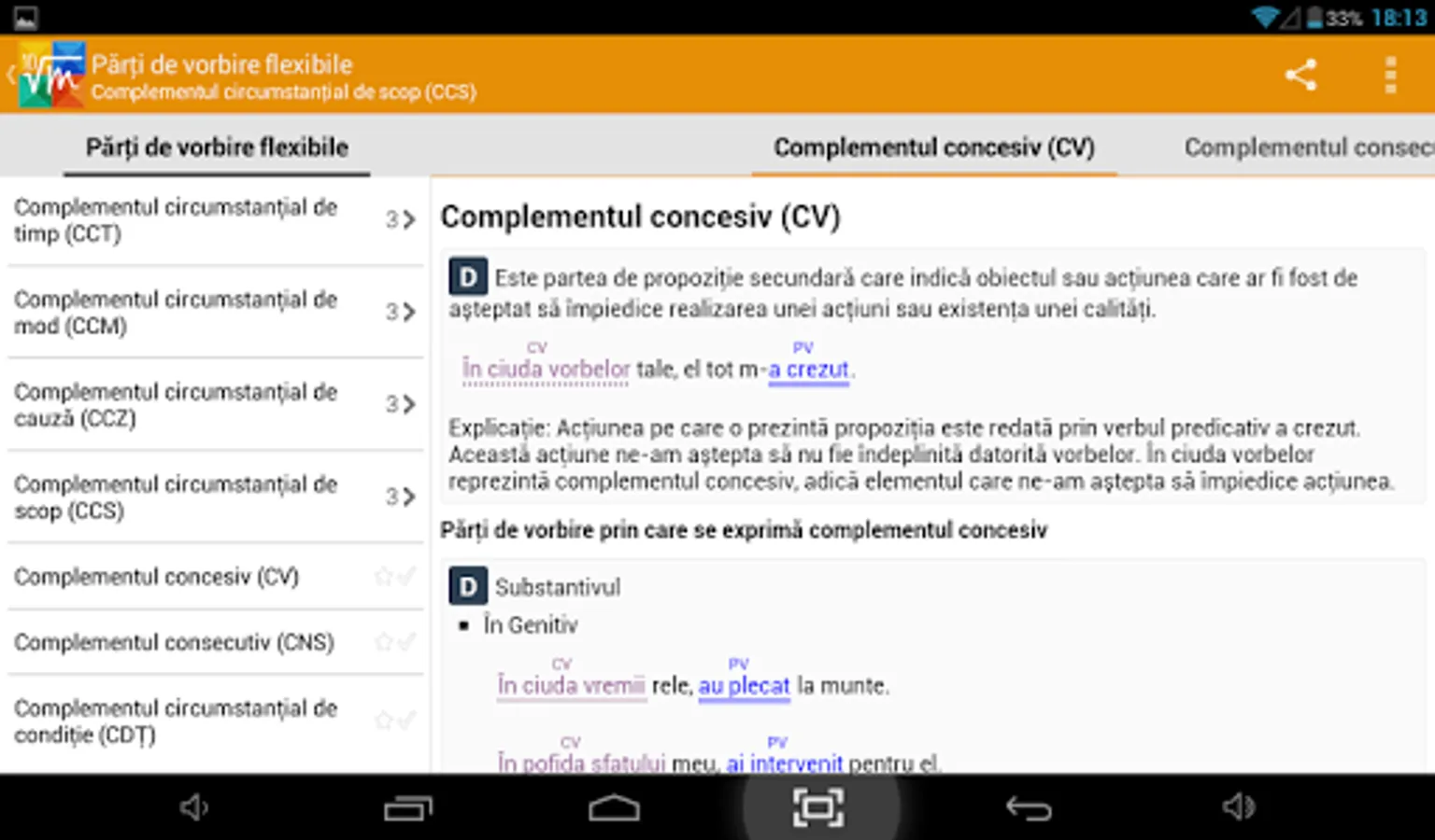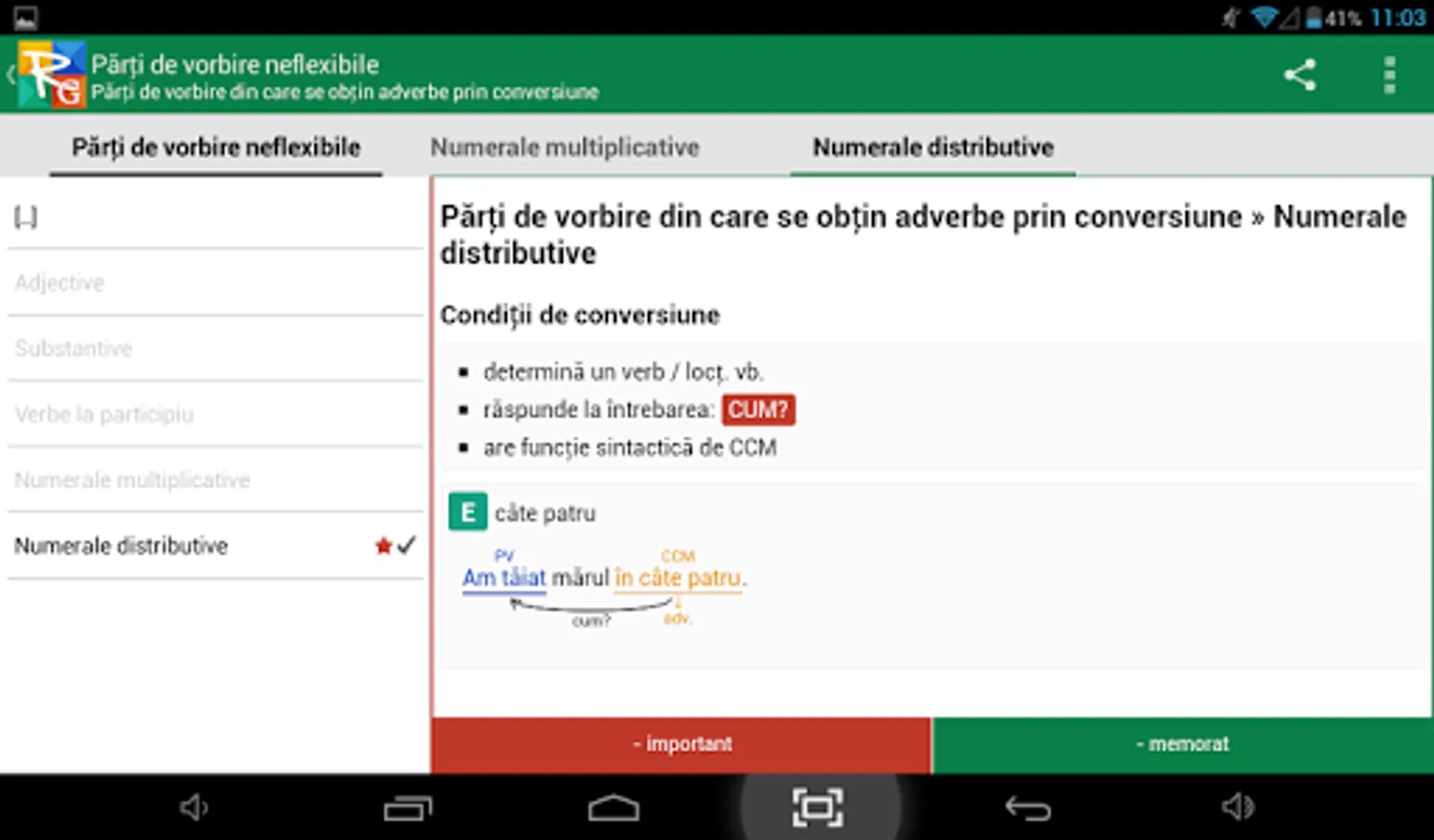 The application is a tool that can easily find any information about morphology and syntax in Romanian grammar.