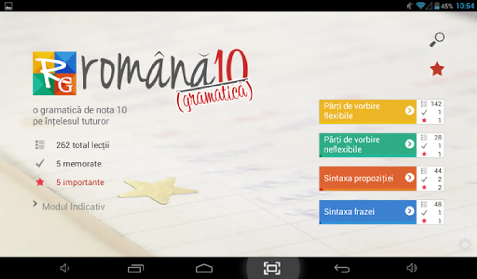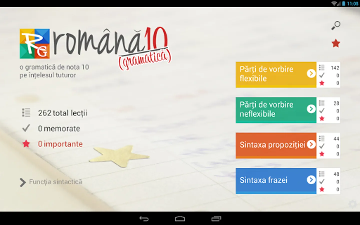 Grammar Română10 application is made by prof. Meda Chetrone and prof. Lidia Urs, together with a group of programmers and cover areas morphology and syntax. Morphology is divided into parts of speech parts of speech flexible and inflexible, while aiming sentence syntax and sentence. One of the features of this application is that it attempts to explain the meaning of all students, wishing thereby help them to understand the concepts of grammar and not just memorize them. We hope that this app will make time grammar simpler and more attractive. Romanian Grammar is beautiful.