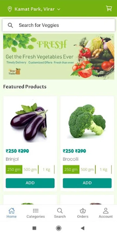 This app is for selling vegetables online to your doorstep delivery. Now its very easy to get fresh vegetables at your home just at clicks.