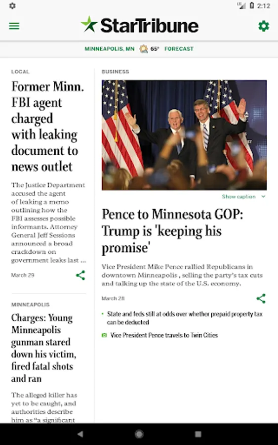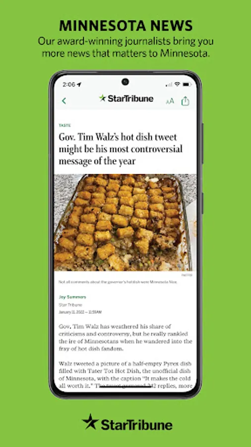 Get news from Minnesota’s most trusted source through the Star Tribune app for Android tablet and phone. Easily explore more stories, find more content, discuss more, engage more, and be the first to know more with breaking news alerts. Download it today and get more of what matters to Minnesota from the state’s largest newsroom. All-day, every day.