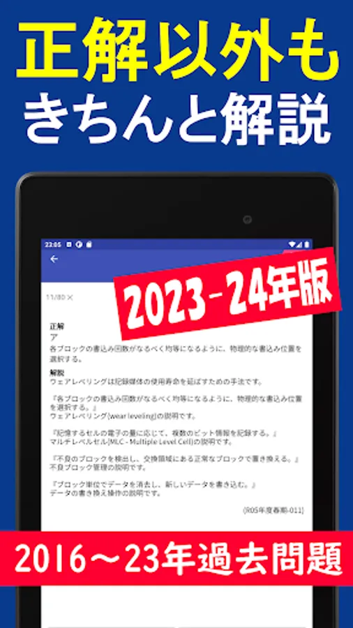 *The shortcut/royal road to passing the exam is not simply solving past questions and memorizing them. The key is to understand the trends of the questions while solving past questions, and then read the explanations to understand them correctly. In creating this software, we have tried to provide a compact and easy-to-understand explanation.