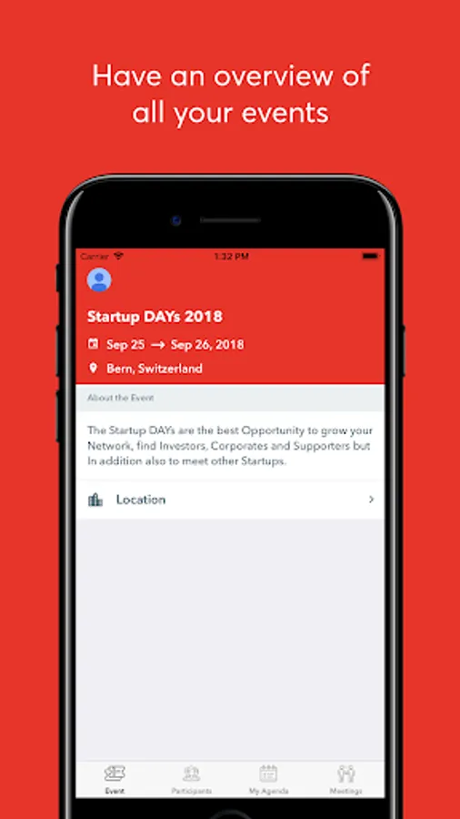 The Startup Invest Events App enables you to directly book other participants for face-to-face meetings and provides you with your personal agenda, including all your meetings, sessions, workshops, etc.