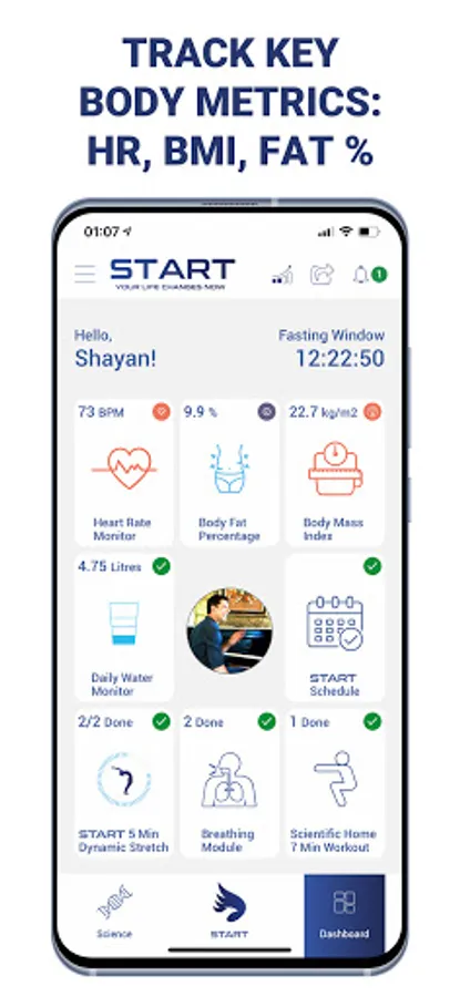 Popular fasting apps like Zero, Simple, BodyFast, DoFasting and Fastic feature a manual start/stop fasting timer. START features an entire automated fasting tracker and fasting timer. Monitor your weight loss through your weight loss tracker alongside your entire day’s activity. Optimise your sleep cycle to sleep at the right time. Optimise health through START’s daily personalised reminders to track each intermittent fast on your program.