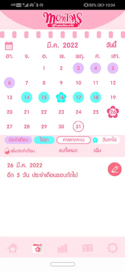 Months app, menstrual cycle calendar - ovulation - help track and record menstrual cycles A woman's menstrual cycle calculator that can predict your cycle, ovulation period, ovulation date and pregnancy date. Just save your menstrual date to this calendar. Personal health records such as mood, symptoms, sexual history The app will make predictions based on your own cycle history.