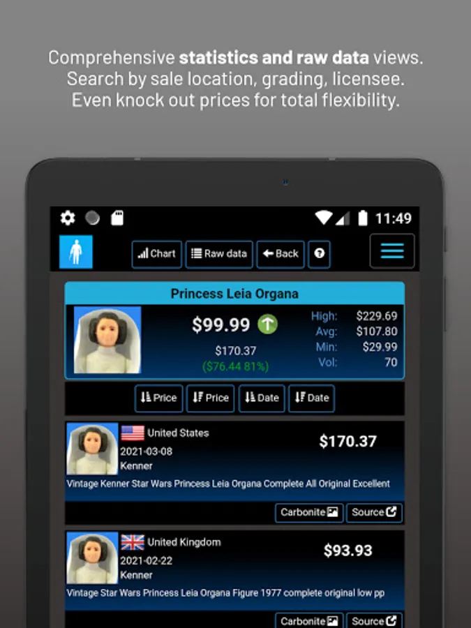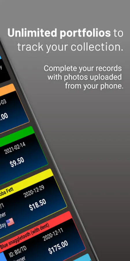 Portfolio functionality keeps you organized and in control of your collection. Upload your own images for each item and record important details such as condition, when you got it and how much you paid for it.