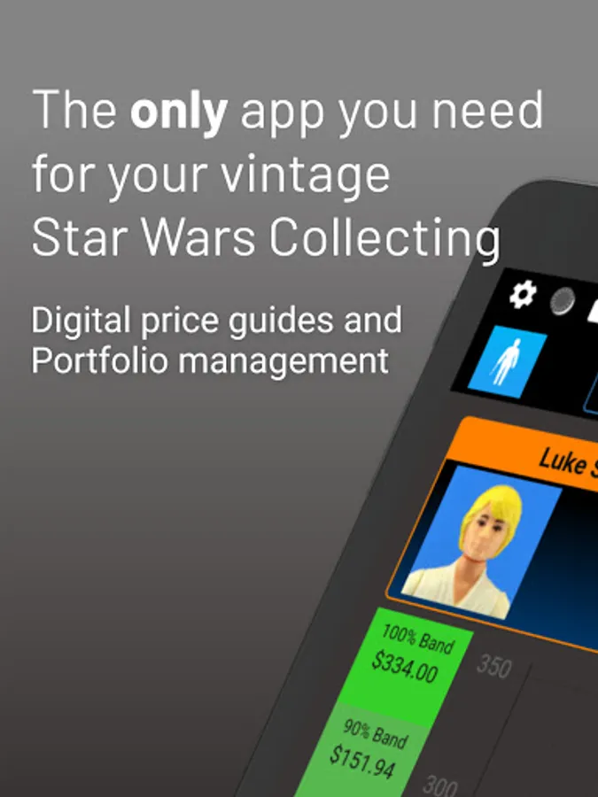 Tracker for Vintage Star Wars is a portfolio and price guide app for tracking your vintage Star Wars collection. It requires an active Tracker account which can be setup at www.starwarstracker.com