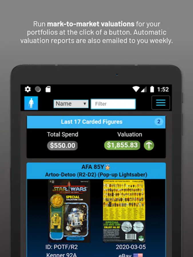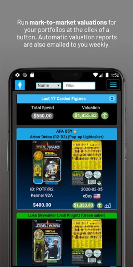 Build up your portfolio of collectibles and get instant on-demand valuations based on current market prices including a weekly email valuation!