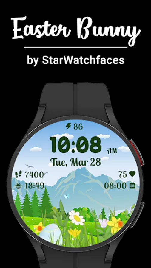 Download the Easter Bunny watchface today and bring the joy and excitement of Easter to your wrist!