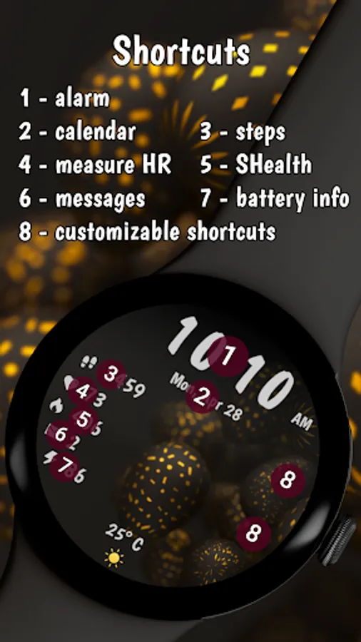 Access your most-used apps or contacts in a flash! The watchface includes two customizable complication slots, letting you personalize shortcuts for maximum efficiency.
