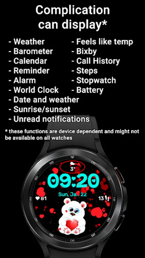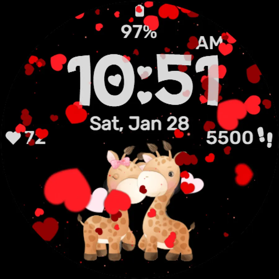 This watchface is a must-have for anyone looking to add a touch of love, cuteness and charm to their smartwatch!