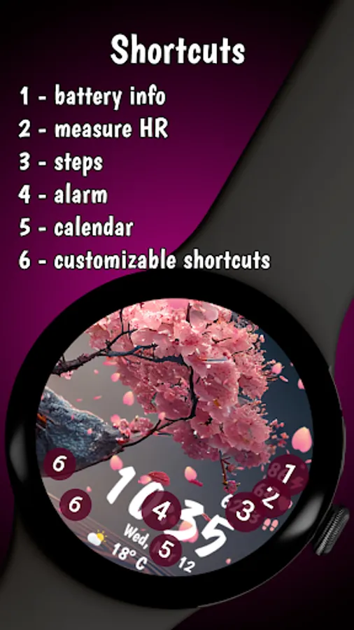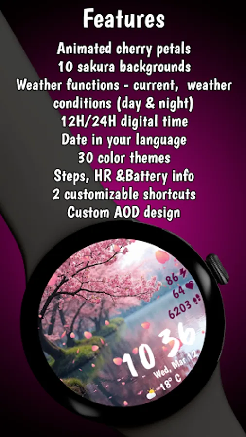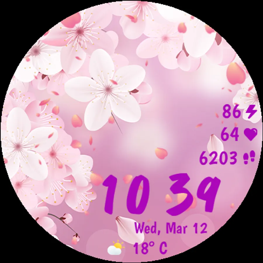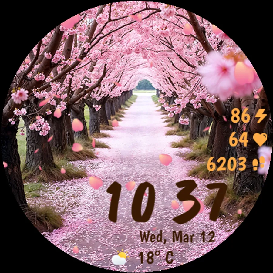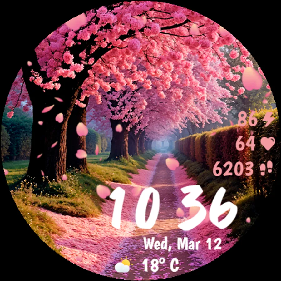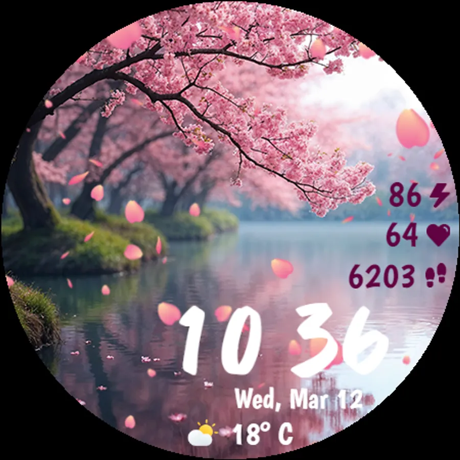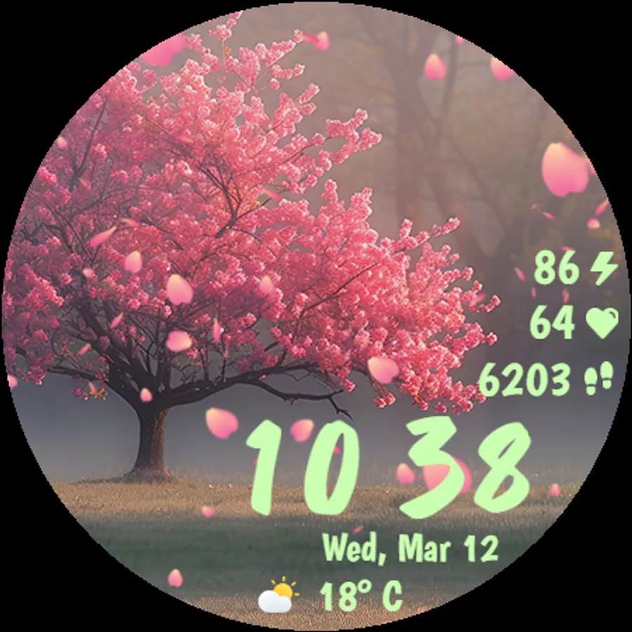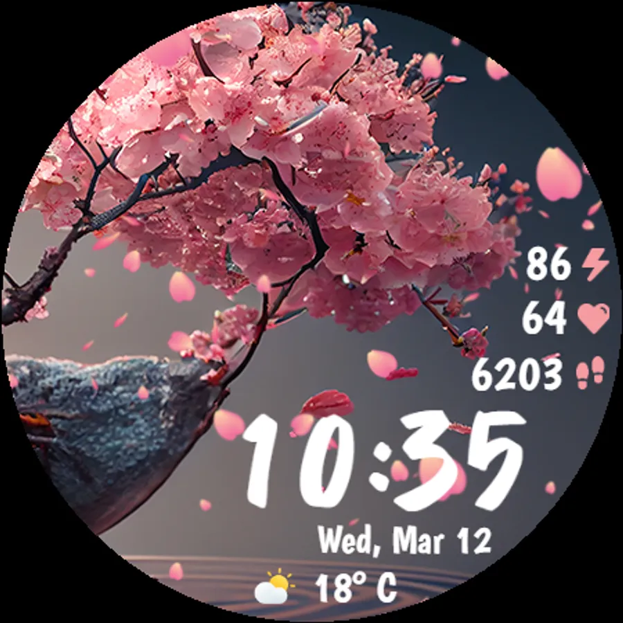 Designed with smooth performance and low battery consumption in mind, this watch face ensures both aesthetics and efficiency. Whether you're a nature lover or simply appreciate the serenity of falling cherry blossoms, this watch face will make your smartwatch feel alive!