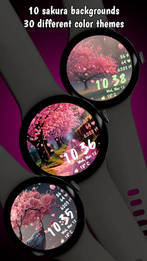 Bring the beauty of cherry blossoms to your wrist with Sakura Animated, a stunningly designed Wear OS watch face that features mesmerizing animated falling petals and a choice of 10 breathtaking backgrounds. Enjoy a perfect blend of elegance and functionality with 30 color themes that seamlessly match every detail, creating a harmonious design.