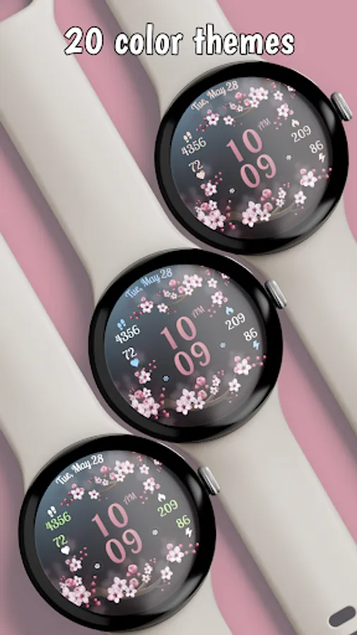Customizable Color Themes: With a palette of 20 vibrant color themes, "Spring Vibes" allows you to infuse your watchface with your unique style. Each color theme gracefully cascades across the date and health statistics, enhancing visibility and personalization.
