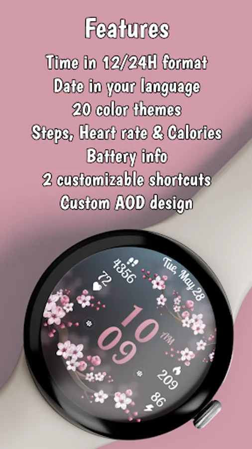 Embrace the allure of springtime with "Spring Vibes" – where functionality meets enchantment, transforming your Wear OS smartwatch into a stylish companion on your journey to well-being and beyond.